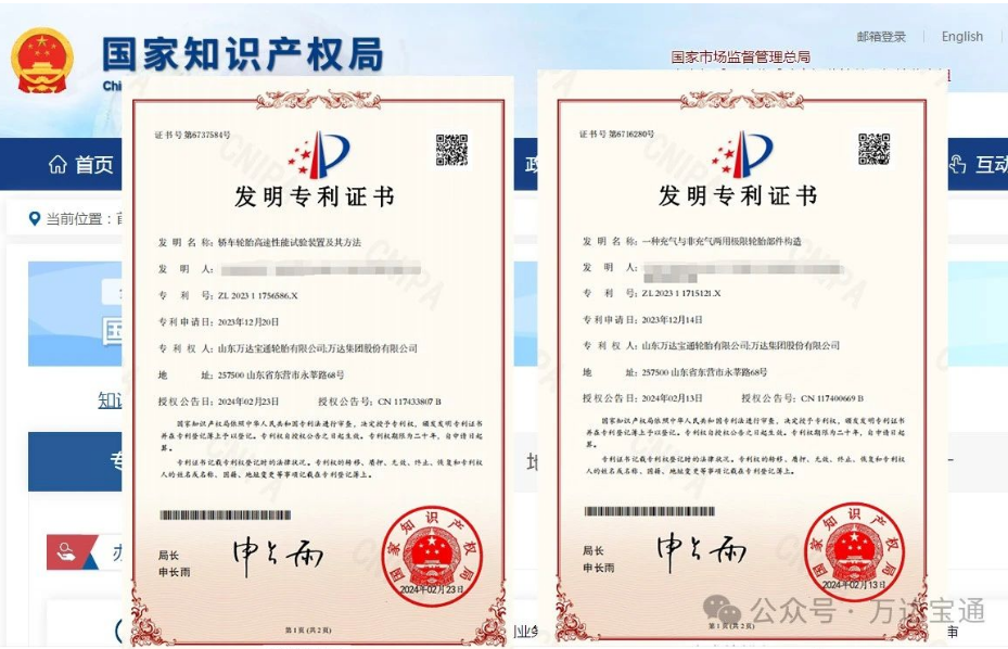 【炭黑產(chǎn)業(yè)網(wǎng)】3月26日消息,萬(wàn)達(dá)寶通輪胎公司近日在科技創(chuàng)新領(lǐng)域取得顯著突破,成功獲批兩項(xiàng)重要發(fā)明專利證書,分別是“轎車輪胎高速性能試驗(yàn)裝置及其方法”以及“一種充氣與非充氣兩用極限輪胎部件構(gòu)造”。這兩項(xiàng)專利的獲得,不僅體現(xiàn)了公司在輪胎技術(shù)上的深厚實(shí)力,也為輪胎行業(yè)的發(fā)展注入了新的活力。