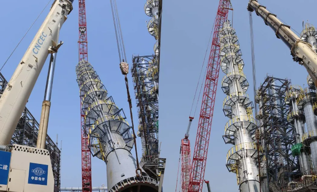 裕龍石化順丁橡膠項目:最高最重塔器吊裝成功