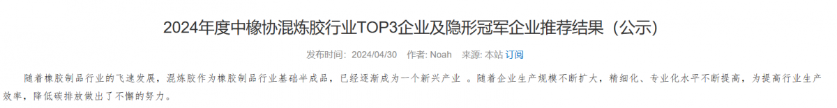 2024年度混煉膠行業(yè)“TOP3”與“隱形冠軍”企業(yè)公示