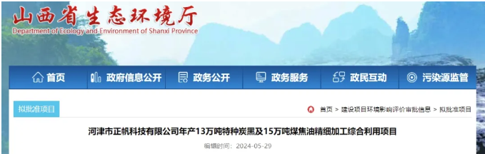 【炭黑產(chǎn)業(yè)網(wǎng)】5月30日消息,山西省生態(tài)環(huán)境廳29日公示,擬批準(zhǔn)河津市正帆科技有限公司年產(chǎn)13萬噸特種炭黑及15萬噸煤焦油精細(xì)加工綜合利用項(xiàng)目。該項(xiàng)目計(jì)劃在山西省運(yùn)城市河津經(jīng)濟(jì)技術(shù)開發(fā)區(qū)建設(shè),總投資額高達(dá)98500萬元。