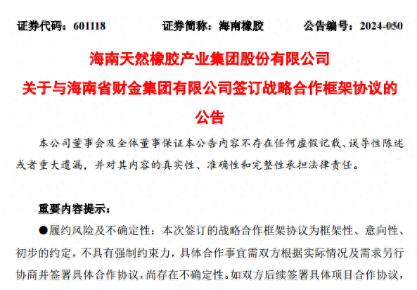 據(jù)悉,海南財(cái)金集團(tuán)是海南省財(cái)政廳全資持有的企業(yè),專注于多種投資活動(dòng),包括私募股權(quán)投資基金管理和創(chuàng)業(yè)投資基金管理服務(wù)。根據(jù)雙方簽署的《戰(zhàn)略合作框架協(xié)議》,未來(lái)將與海南自由貿(mào)易港建設(shè)投資基金等政府投資基金進(jìn)行合作,通過(guò)市場(chǎng)化的方式,共同推進(jìn)天然橡膠產(chǎn)業(yè)的發(fā)展。