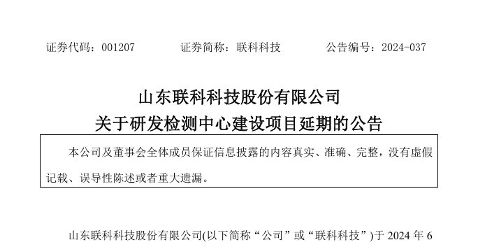 延期決定!聯(lián)科科技重要項(xiàng)目調(diào)整至2025年