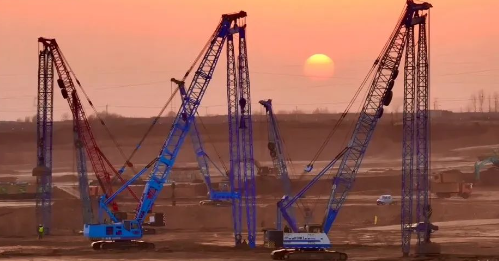 在項目現(xiàn)場,一幅熱火朝天的施工景象展現(xiàn)在眼前。工程機械轟鳴不斷,運輸車來回穿梭裝卸土方,工人們揮汗如雨,全力以赴推進工程進度。為了搶抓工期,百余臺挖掘機、內(nèi)運車、推土機、壓路機等大型設(shè)備24小時不間斷作業(yè),施工通宵達旦,以確保項目能夠如期交付。
