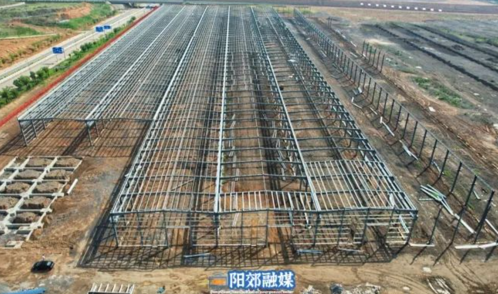 當(dāng)前,項(xiàng)目已進(jìn)入關(guān)鍵的建設(shè)階段,正在緊張進(jìn)行定制鋼架結(jié)構(gòu)標(biāo)準(zhǔn)化廠房的吊裝作業(yè)?,F(xiàn)場(chǎng)可見(jiàn),首座萬(wàn)級(jí)平方米的定制型鋼架結(jié)構(gòu)標(biāo)準(zhǔn)化廠房已初露端倪,展現(xiàn)出宏偉的規(guī)模。同時(shí),第二至第五座同等規(guī)模的廠房也已完成鋼柱、鋼梁、邊梁及不銹鋼頂梁等主要結(jié)構(gòu)的吊裝工作,整體框架基本成型。而第六、第七座廠房的吊裝工程同樣在有條不紊地推進(jìn)中。