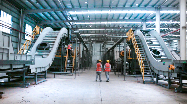 據(jù)炭黑產(chǎn)業(yè)網(wǎng)了解,光大綠保的廢舊輪胎綜合利用項(xiàng)目投資總額達(dá)到3.5億元,年處理能力設(shè)計(jì)為10萬(wàn)噸。在光大綠保的預(yù)處理車間,三條車胎處理產(chǎn)線正在高效運(yùn)轉(zhuǎn)。廢舊輪胎經(jīng)過(guò)破碎、磁選等工序后,被分離成鋼絲、膠粒等可再生利用的產(chǎn)品。