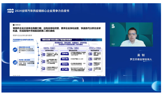 羅蘭貝格全球合伙人吳釗表示,零部件企業(yè)正迎來(lái)出海窗口期,邁向全球化經(jīng)營(yíng),要求企業(yè)深化運(yùn)營(yíng)、快速迭代以抓住全球機(jī)遇,形成由海外市場(chǎng)驅(qū)動(dòng)的第二增長(zhǎng)曲線。
