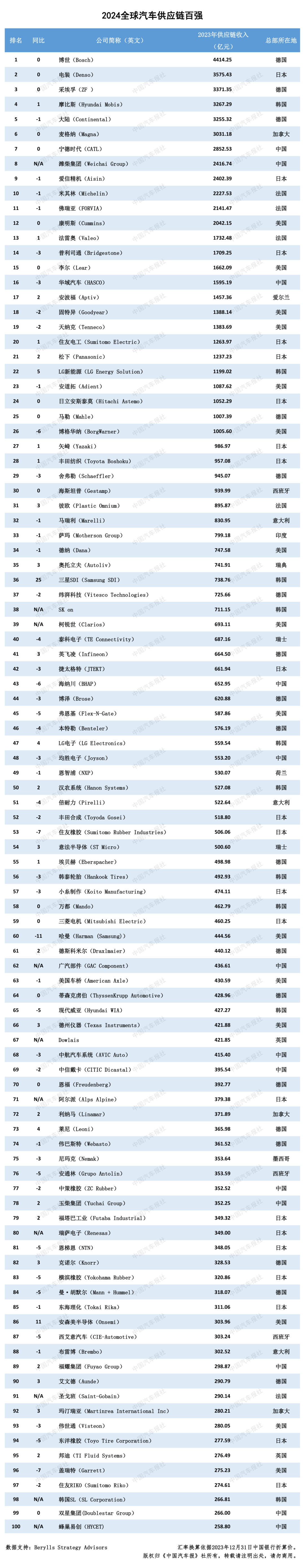 附:“2024中國(guó)汽車供應(yīng)鏈百?gòu)?qiáng)”、“2024全球汽車供應(yīng)鏈百?gòu)?qiáng)”