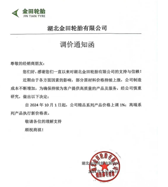 此番橡膠期貨價(jià)格的飆升,迅速在下游產(chǎn)業(yè)鏈中引發(fā)了連鎖反應(yīng)。次日,即9月20日,三家輪胎企業(yè)幾乎同時(shí)發(fā)布了漲價(jià)通知。