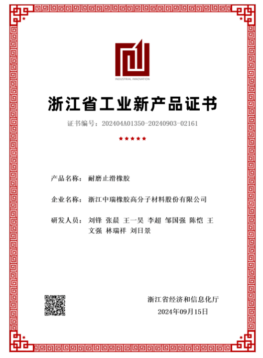 中瑞橡膠“耐磨止滑橡膠”通過省級鑒定