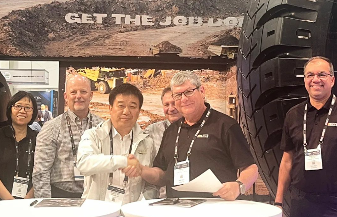 【炭黑產(chǎn)業(yè)網(wǎng)】9月28日消息,近日,全球矚目的美國拉斯維加斯礦業(yè)展于9月24日至26日成功舉辦,作為礦業(yè)領(lǐng)域的頂級盛會,它匯聚了眾多國際礦業(yè)巨頭及頂尖設(shè)備制造商。在此盛會上,賽輪集團以其邁馳特種胎系列的卓越產(chǎn)品驚艷亮相,全面展現(xiàn)了其在礦山特種胎領(lǐng)域的創(chuàng)新技術(shù)與雄厚實力。期間,賽輪集團總裁謝小紅與Kal Tire的高級副總裁Dan Allan共同簽署了具有戰(zhàn)略意義的合作協(xié)議。