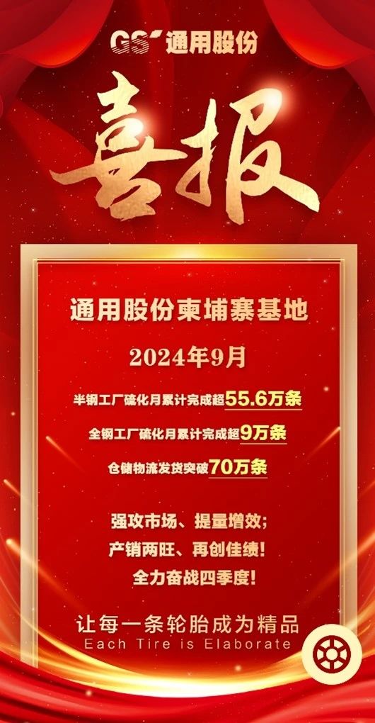 【炭黑產(chǎn)業(yè)網(wǎng)】9月30日消息,通用股份(601500.SH)位于柬埔寨的生產(chǎn)基地再度傳來(lái)喜訊,其9月份的生產(chǎn)數(shù)據(jù)彰顯出強(qiáng)勁的增長(zhǎng)動(dòng)力。據(jù)統(tǒng)計(jì),該基地當(dāng)月半鋼胎產(chǎn)量成功攀升至55.6萬(wàn)條,而全鋼胎產(chǎn)量也突破了9萬(wàn)條大關(guān),兩者均創(chuàng)下了新的生產(chǎn)紀(jì)錄。與此同時(shí),產(chǎn)品發(fā)貨量也實(shí)現(xiàn)了歷史性突破,達(dá)到了70萬(wàn)條,顯現(xiàn)出市場(chǎng)需求的旺盛態(tài)勢(shì)。