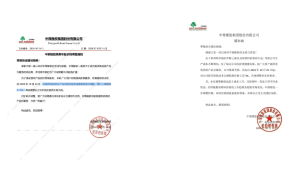 據(jù)炭黑產(chǎn)業(yè)網(wǎng)了解,就在前一天,中策橡膠已連續(xù)發(fā)布了兩份漲價通知。第一份通知指出,自2024年10月25日起,公司將對斜交輪胎及非公路輪胎的價格進(jìn)行上浮,上調(diào)比例同樣為3%。而第二份通知則表明,公司將對乘用車輪胎的部分產(chǎn)品價格以及各項(xiàng)促銷政策進(jìn)行相應(yīng)的調(diào)整,預(yù)計上調(diào)的幅度將在2%至3%之間。