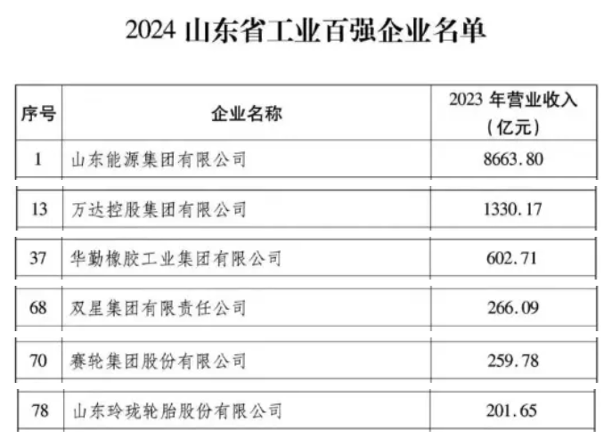 山東百?gòu)?qiáng)企業(yè)發(fā)布,輪胎五強(qiáng)閃耀榜單