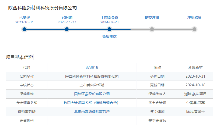 【炭黑產(chǎn)業(yè)網(wǎng)】10月26日消息,在10月25日召開(kāi)的北交所上市委2024年第18次審議會(huì)議上,陜西科隆新材料科技股份有限公司(以下簡(jiǎn)稱“科隆新材”)成功通過(guò)審議,成為當(dāng)日唯一一家獲準(zhǔn)上市的企業(yè)。