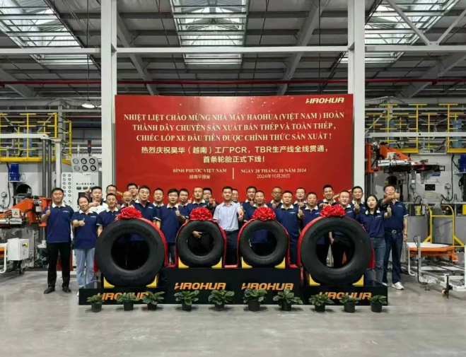 【炭黑產(chǎn)業(yè)網(wǎng)】10月29日消息,山東知名輪胎制造商昊華在越南的工廠已成功具備生產(chǎn)PCR(乘用車輪胎)和TBR(卡車及客車輪胎)的能力,并于10月28日隆重舉行了首條輪胎的下線儀式?,F(xiàn)場(chǎng)照片顯示,下線的輪胎涵蓋了PCR和TBR兩大類型,標(biāo)志著該工廠生產(chǎn)線的全面啟動(dòng)。(圖片來(lái)源:昊華)