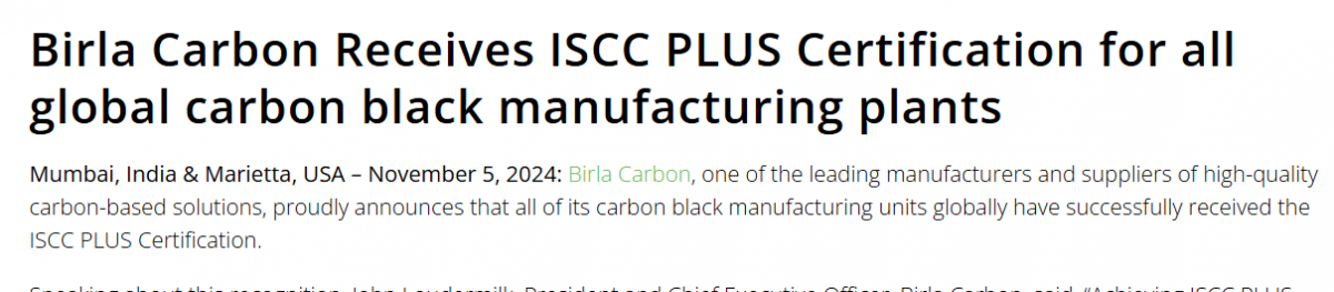 【炭黑產(chǎn)業(yè)網(wǎng)】11月7日消息,博拉炭黑自豪地宣布,其全球所有炭黑生產(chǎn)工廠均已成功獲得ISCC PLUS認(rèn)證。