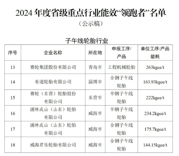 2024山東能效標(biāo)桿揭曉,五家輪胎企業(yè)上榜