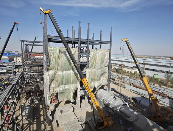 鋼結(jié)構(gòu)框架安裝完成1800噸,非標(biāo)設(shè)備制作安裝完成50%以上,成品設(shè)備安裝19臺(tái),裝修改造任務(wù)全面完成。