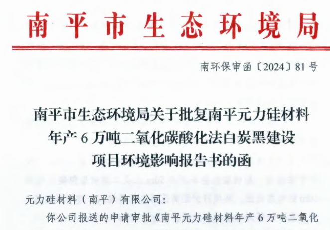 年產(chǎn)6萬噸二氧化碳酸化法白炭黑項(xiàng)目環(huán)評(píng)獲批
