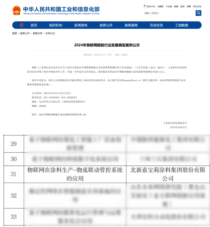 涂料行業(yè)唯一!北新嘉寶莉物聯(lián)網(wǎng)項目獲工信部殊榮