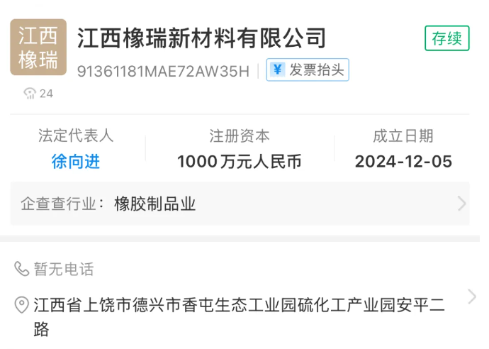 新成立的江西橡瑞新材料有限公司,于2024年12月5日正式掛牌,由徐向進(jìn)擔(dān)任法定代表人,公司注冊(cè)資本雄厚,達(dá)1000萬元人民幣。其注冊(cè)地選址于江西省上饒市德興市香屯生態(tài)工業(yè)園的硫化工產(chǎn)業(yè)園內(nèi),安平二路旁,地理位置優(yōu)越。公司的業(yè)務(wù)范疇廣泛,不僅囊括了橡膠制品的制造,還涉及輪胎的生產(chǎn)銷售以及新材料技術(shù)的研發(fā)創(chuàng)新等多個(gè)高增長(zhǎng)領(lǐng)域。
