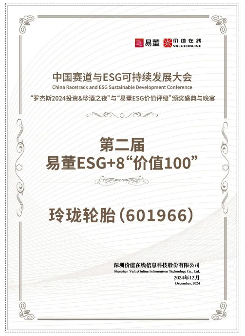 唯一輪胎企業(yè)!玲瓏輪胎斬獲易董ESG+8“價(jià)值100”殊榮