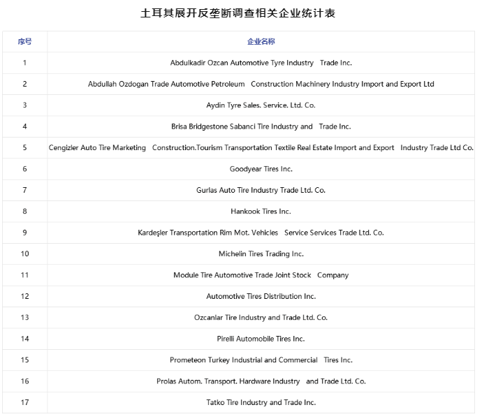 土耳其啟動輪胎反壟斷調(diào)查,中國輪胎企業(yè)“幸免”