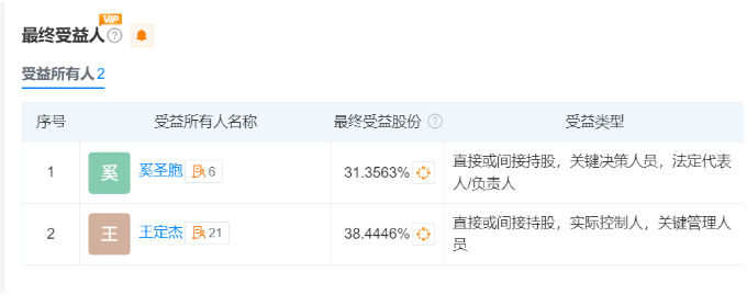 此外,天輪控股的最終受益人信息也一并公開(kāi)。其中,奚圣胞作為最終受益人之一,持有公司31.3563%的股份;而另一位最終受益人王定杰則持有高達(dá)38.4446%的股份,成為天輪控股的實(shí)際控制人之一。
