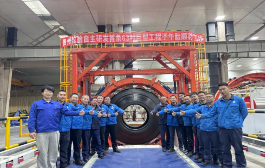 【炭黑產(chǎn)業(yè)網(wǎng)】12月24日消息,12月18日,貴州輪胎前進(jìn)工程胎分公司的硫化區(qū)內(nèi)人聲鼎沸,共同見證了一個意義非凡的瞬間。在公司高層的引領(lǐng)及全體部門的攜手合作下,貴州輪胎自主研發(fā)的首款53/80R63規(guī)格巨型工程子午線輪胎順利誕生,這不僅代表了貴州輪胎的又一次技術(shù)飛躍,也預(yù)示著其在巨型工程胎制造領(lǐng)域邁入了一個嶄新的高質(zhì)量發(fā)展階段。53/80R63輪胎的問世,無疑將貴州輪胎推向了新的發(fā)展高峰。