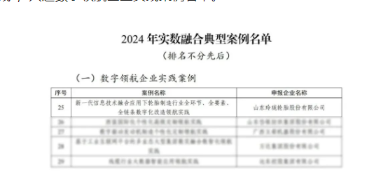 【炭黑產(chǎn)業(yè)網(wǎng)】1月2日消息,近日,國家工信部正式公布了2024年實數(shù)融合典型案例名單,其中“輪胎制造行業(yè)在新一代信息技術(shù)融合應(yīng)用下的全環(huán)節(jié)、全要素、全鏈條數(shù)字化革新領(lǐng)航實踐”脫穎而出,成功入選數(shù)字領(lǐng)航企業(yè)實踐案例名單。這一榮譽由山東玲瓏輪胎股份有限公司獨得,成為輪胎行業(yè)中唯一獲此殊榮的企業(yè)。