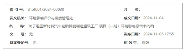 輪胎超級工廠項目!環(huán)評報告被退!