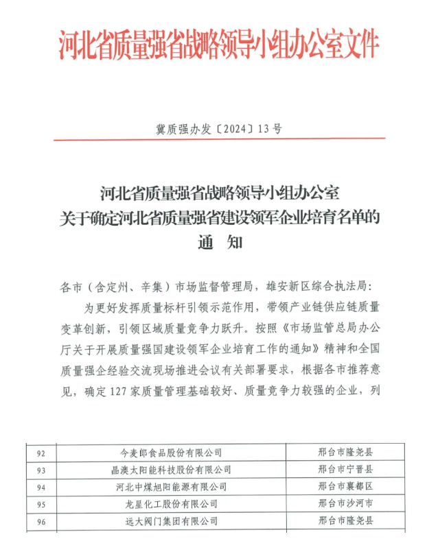 河北省此次確定質(zhì)量強省建設(shè)領(lǐng)軍企業(yè)培養(yǎng)名單,意在通過樹立企業(yè)質(zhì)量標桿,引領(lǐng)產(chǎn)業(yè)鏈供應(yīng)鏈的質(zhì)量升級,增強區(qū)域質(zhì)量競爭力,為打造質(zhì)量強國建設(shè)領(lǐng)軍企業(yè)奠定堅實基礎(chǔ)。作為炭黑行業(yè)的佼佼者,龍星化工一直將質(zhì)量視為企業(yè)發(fā)展的核心引擎。