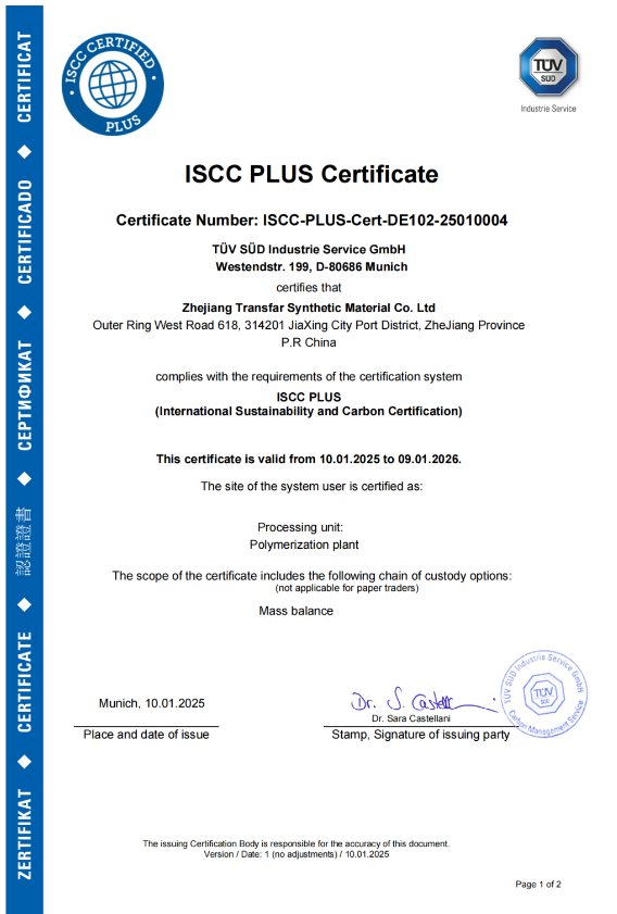 【炭黑產(chǎn)業(yè)網(wǎng)】1月15日消息,浙江傳化合成材料股份有限公司在可持續(xù)發(fā)展領(lǐng)域取得重大突破,于2025年1月10日成功獲得國際可持續(xù)和碳認(rèn)證(ISCC)體系的ISCC PLUS認(rèn)證證書(編號(hào):ISCC-PLUS-Cert-DE102-25010004)。此證書的獲得,標(biāo)志著傳化合成已正式融入全球碳核算及業(yè)務(wù)體系,并具備了使用生物基等可持續(xù)原材料進(jìn)行生產(chǎn),并開展相應(yīng)碳核算的資格,這無疑是公司在可持續(xù)發(fā)展征程上的一個(gè)重要里程碑。