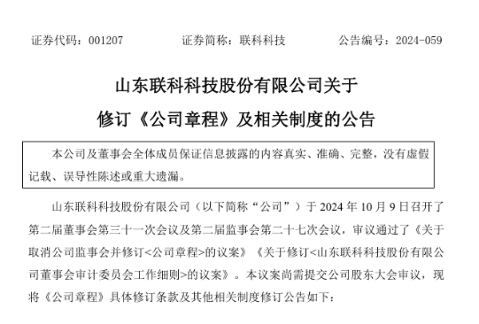 值得注意的是,聯(lián)科科技在2024年10月就完成了公司章程的修訂,取消了監(jiān)事會,轉(zhuǎn)而設(shè)立了審計委員會。然而,證監(jiān)會直到同年12月才發(fā)布了《上市公司章程指引(修訂草案征求意見稿)》。這表明,聯(lián)科科技是依據(jù)公司法的相關(guān)規(guī)定,自主進行了章程的修訂。