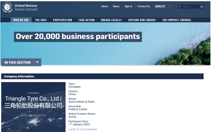 三角輪胎正式加入UNGC,踐行全球社會責(zé)任
