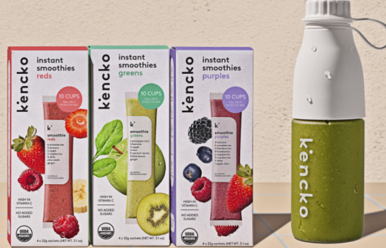 ② 速溶smoothies+冰沙瓶:無水smoothie配方,采用生物基、可家庭堆肥降解小包裝,配合重復使用搖搖瓶,為消費者提供無浪費的有機產品。