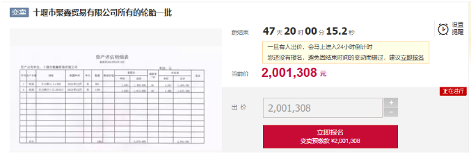 近日,十堰市茅箭區(qū)人民法院發(fā)布公告,宣布將于2025年2月3日10時(shí)至2025年4月4日10時(shí)(延時(shí)除外),在淘寶網(wǎng)司法拍賣網(wǎng)絡(luò)平臺上公開變賣十堰市聚鑫貿(mào)易有限公司的一批輪胎。