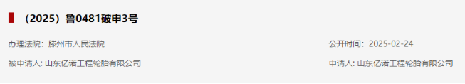 日前,全國企業(yè)破產重整案件信息網公開了山東億諾工程輪胎有限公司的破產審查案件,辦理法院為滕州市人民法院。