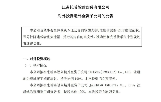 拓展海外版圖:托普輪胎在柬埔寨設(shè)立全資子公司