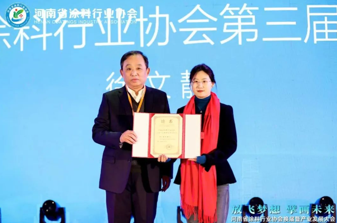 大會(huì)舉行了隆重的授牌儀式,分別為第三屆會(huì)長(zhǎng)單位、常務(wù)副會(huì)長(zhǎng)單位、副會(huì)長(zhǎng)單位頒發(fā)牌匾,并為河南臥龍涂料科技有限公司董事會(huì)主席李國(guó)報(bào)頒發(fā)協(xié)會(huì)第三屆名譽(yù)會(huì)長(zhǎng)證書,為徐文靜頒發(fā)協(xié)會(huì)第三屆秘書長(zhǎng)聘書。