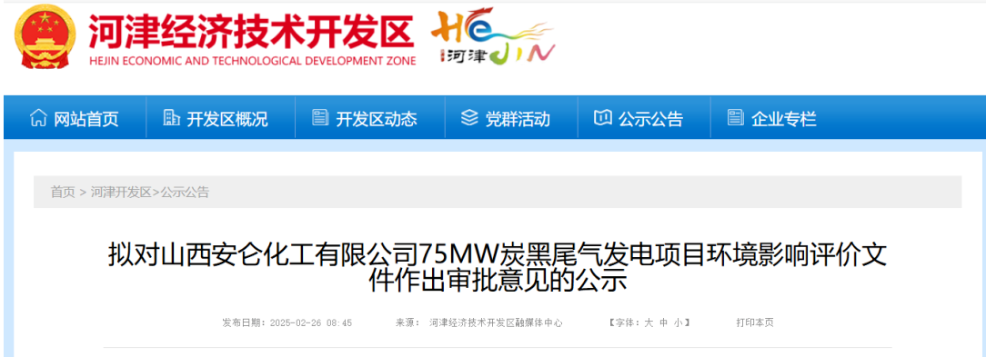 山西75MW炭黑尾氣發(fā)電項(xiàng)目,公示!