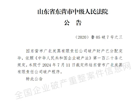 該企業(yè)于2020年6月10日被山東省東營(yíng)市中級(jí)人民法院裁定受理破產(chǎn)重整申請(qǐng)。此后,公司管理人嘗試招募重整投資人,但未能成功。最終,由于無(wú)法在規(guī)定時(shí)間內(nèi)提交重整計(jì)劃草案,根據(jù)管理人的申請(qǐng),法院于2020年9月裁定終止廣北炭黑的重整程序,并宣告其破產(chǎn)。