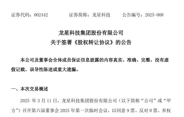 【炭黑產(chǎn)業(yè)網(wǎng)】3月12日消息,龍星科技審議通過了《關(guān)于簽署〈股權(quán)轉(zhuǎn)讓協(xié)議〉的議案》。