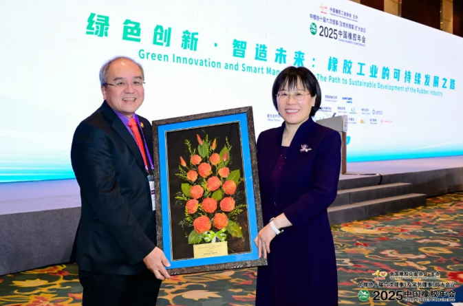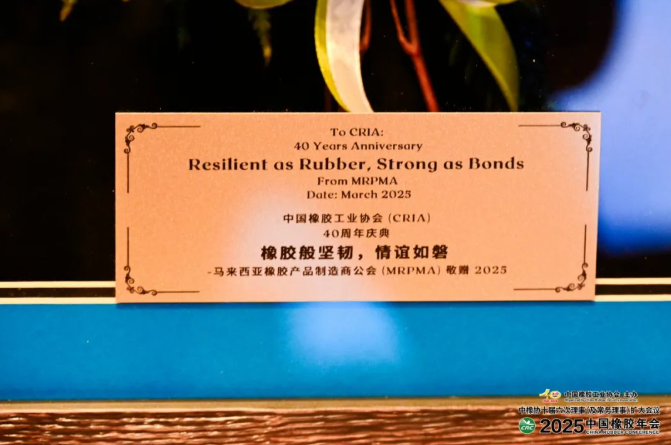 2025年是中國橡膠工業(yè)協(xié)會(huì)成立40周年。3月26日,在2025中國橡膠年會(huì)期間,馬來西亞橡膠產(chǎn)品制造商公會(huì)(MRPMA)向中國橡膠工業(yè)協(xié)會(huì)贈(zèng)送橡膠樹葉花束,寓意中馬橡膠行業(yè)如橡膠般堅(jiān)韌的情誼。