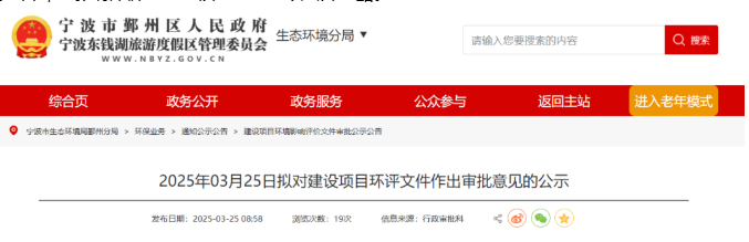 近日,依據(jù)建設(shè)項(xiàng)目環(huán)境影響評(píng)價(jià)審批流程的相關(guān)規(guī)范,寧波市生態(tài)環(huán)境局鄞州分局經(jīng)過(guò)審慎審議后,決定就一批建設(shè)項(xiàng)目的環(huán)境影響評(píng)價(jià)文件發(fā)布擬審批意見(jiàn)。為切實(shí)保障審批工作的權(quán)威性與公平性,同時(shí)充分尊重并維護(hù)公眾的知情權(quán)與環(huán)境權(quán)益,該分局特將相關(guān)建設(shè)項(xiàng)目環(huán)境影響評(píng)價(jià)文件的核心信息予以公開(kāi)披露。