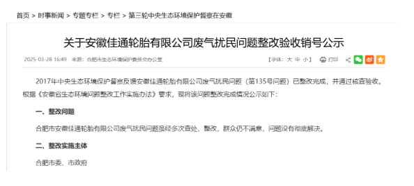 【炭黑產業(yè)網】4月9日消息,近日,安徽佳通輪胎有限公司歷經八年的廢氣治理之路終于迎來重要節(jié)點,其整改工作順利通過核查驗收,標志著困擾當地居民多年的惡臭及揮發(fā)性有機物(VOCs)廢氣擾民問題得到有效解決,環(huán)保治理取得突破性進展。