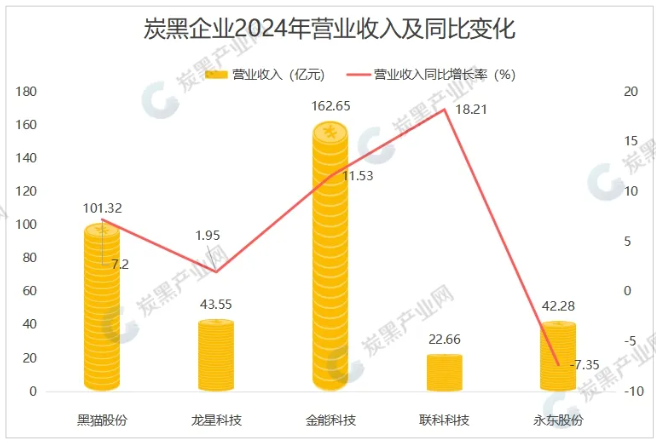 金能科技以162.65億元營收規(guī)模領(lǐng)跑,黑貓股份首次突破百億關(guān)口達(dá)101.32億元,聯(lián)科科技則以18.21%的營收增速成為增長冠軍。