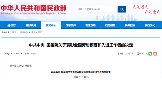 時(shí)間:2025-04-30 來源:中華人民共和國民政部、新華社發(fā)表評論