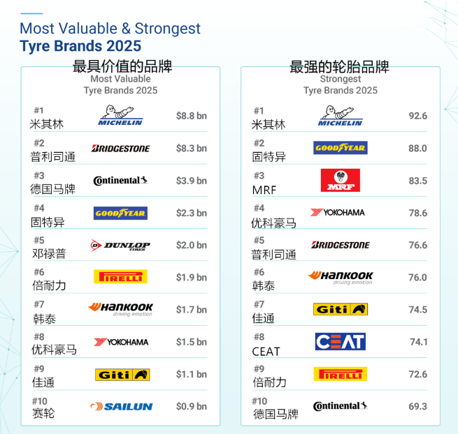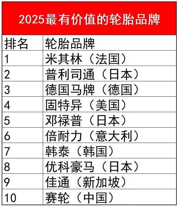 近日,國外媒體發(fā)布了《2025年全球輪胎品牌價值與實力排行榜》在新能源汽車普及加速、綠色技術(shù)迭代的產(chǎn)業(yè)背景下,這份榜單不僅揭示了行業(yè)格局的深刻變化,更展現(xiàn)了中國品牌的突破性成長。