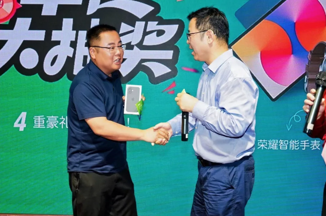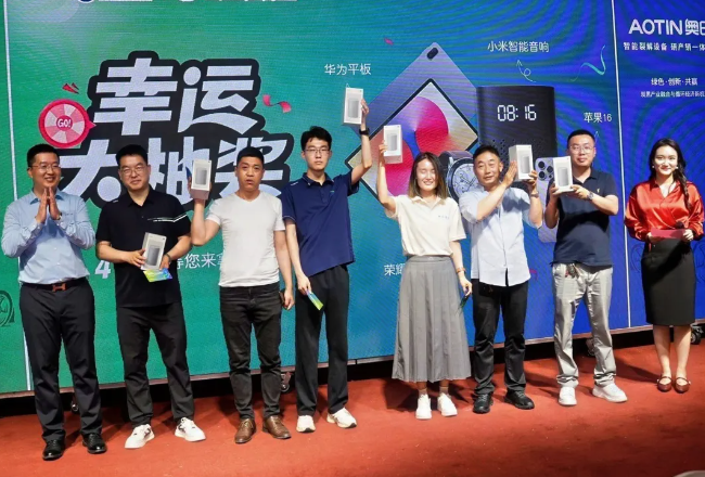 晚宴設(shè)四輪抽獎,獎品涵蓋音響、手表、平板、蘋果手機,現(xiàn)場掌聲歡呼不斷,氛圍熱烈。